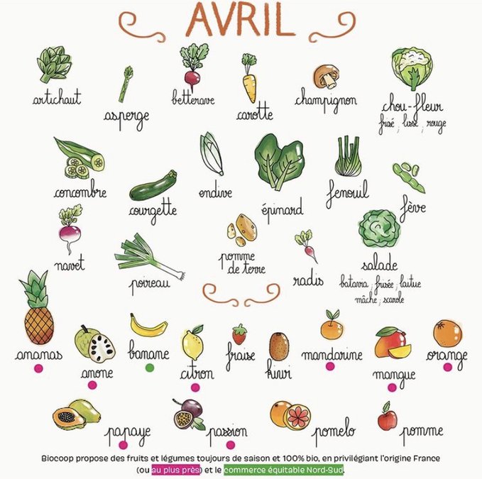 Le calendrier de saisonnalité du mois d'Avril est là  !