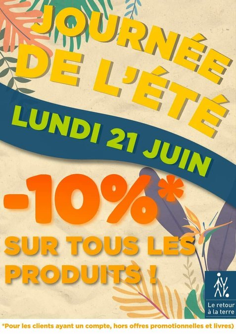 [ÉVÈNEMENT] Le Retour à la Terre vous attend ce lundi 21 juin pour la journée de l'été ! Profitez lors de cette journée de -10%* sur tous les produits du magasin (*pour les clients ayant un compte et hors promotions LRT) et livres ! 😉