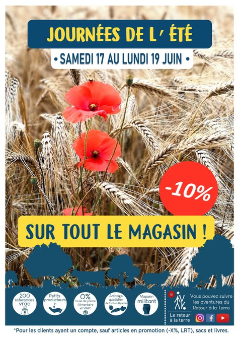 Vos magasins Le Retour à la Terre fêtent l'été du samedi 17 juin au lundi 19 juin.