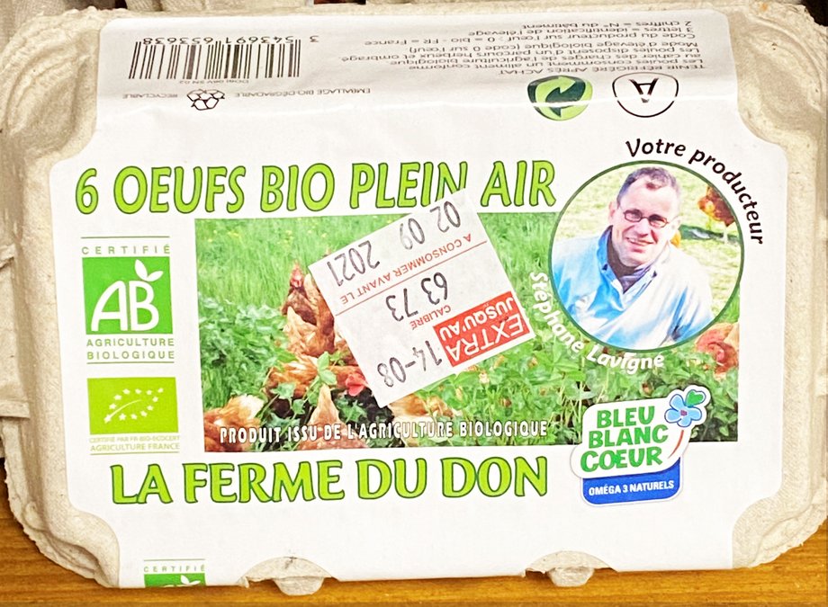 Le Retour à la Terre est fier de vous proposer des oeufs bio Bleu‑Blanc‑Coeur !