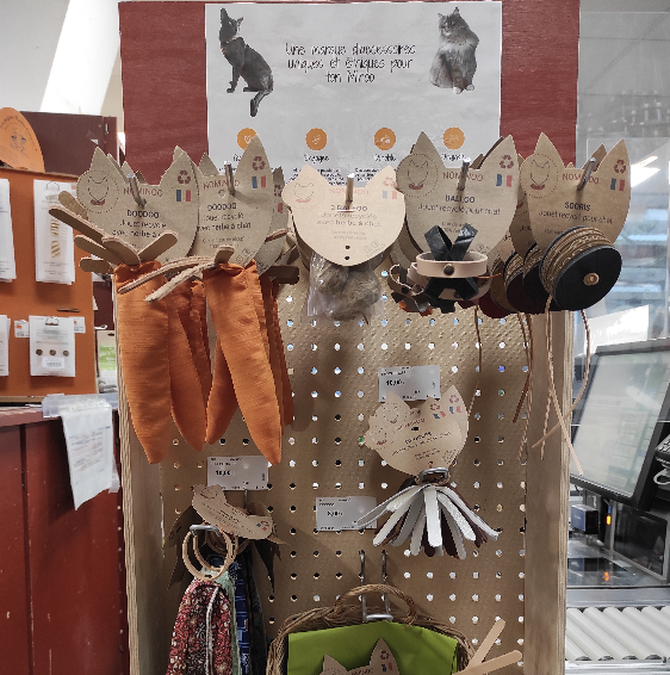 Nominoo c'est une marque des accessoires recyclés pour chat. Fabriqués à la main, à partir de matières de récup dans un atelier à Tours !