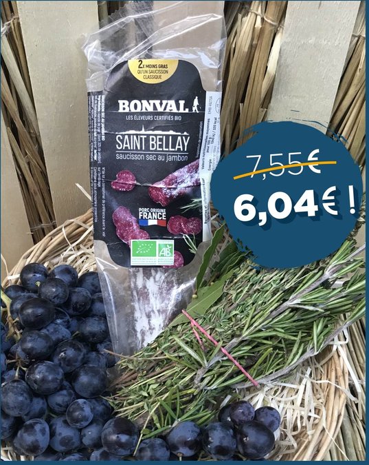 Le Saint Bellay un saucisson sec au jambon : deux fois moins gras qu’un saucisson classique, il est idéal à partager entre amis ou en famille sans culpabiliser 😉