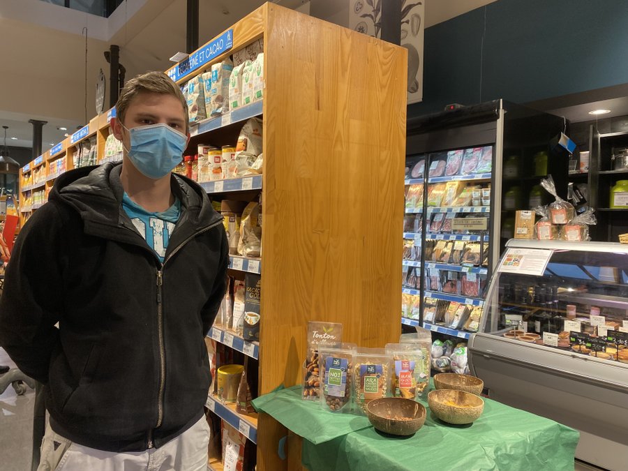 A l'occasion des journées anniversaire, Sébastien de Tonton d Ailleurs est venu vous faire goûter ses fruits secs qu'on trouve aussi bien au rayon vrac qu'en petits sachets colorés : noix de cajou, mangues, noisettes, arachides grillées salées.. 😊