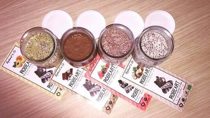 • Le nectar de Chia de Robeart c’est du lait de coco, de la purée de fruits 100% fruits, du sirop d’agave et des graines de Chia. Le tout concocté avec douceur (mais fermeté) en musique. Le produit se déploie en quatre saveurs : abricot, fruits rouges, coco et chocolat !